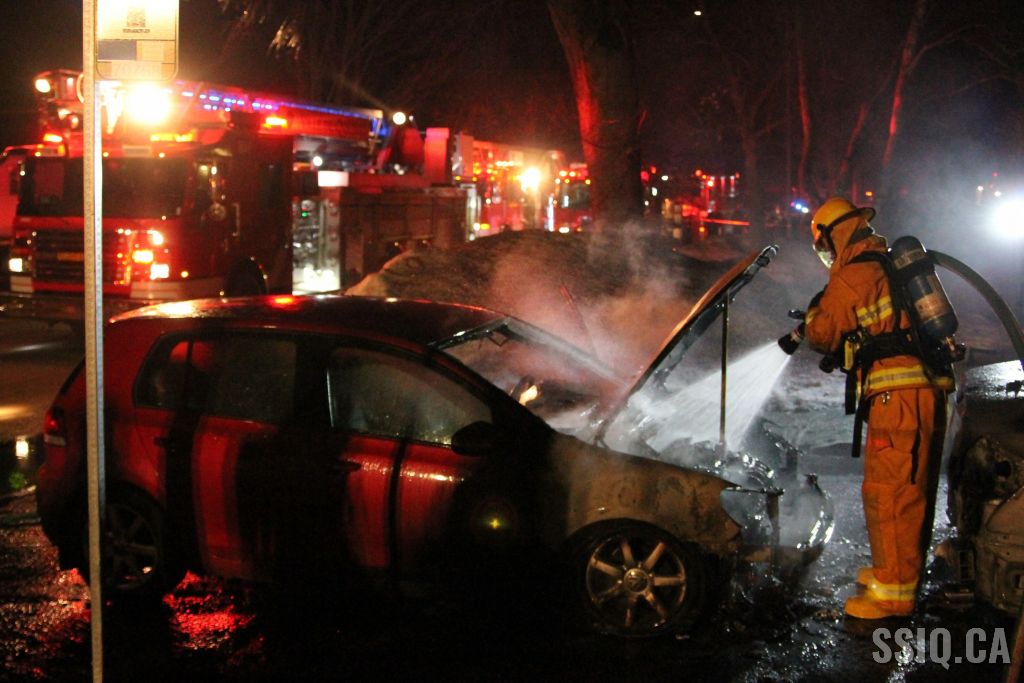 Plusieurs appels sont logés au 911. Selon les plaignants, deux voitures seraient en feu à quelques pieds de la maison.