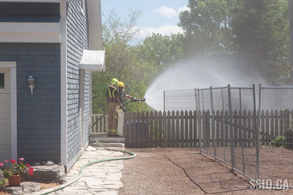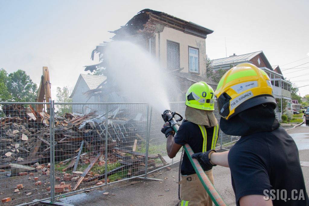 Cet après-midi, les pompiers de la caserne 7 sont intervenus pour assistance, lors de la démolition d'un bâtiment patrimonial de l'avenue Royale dans l'arrondissement Beauport.