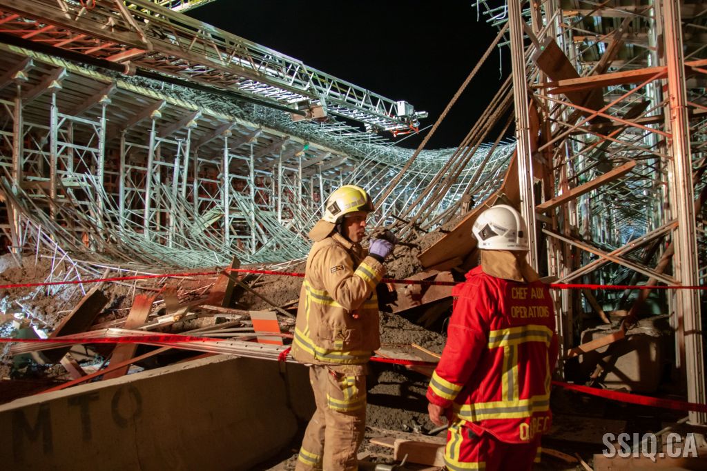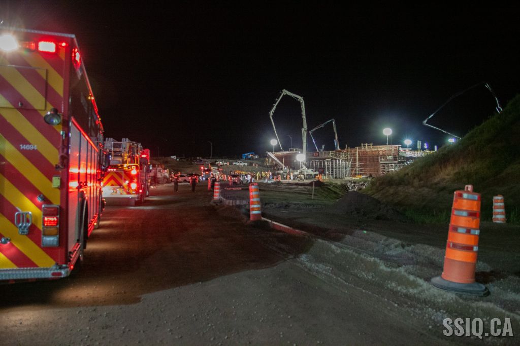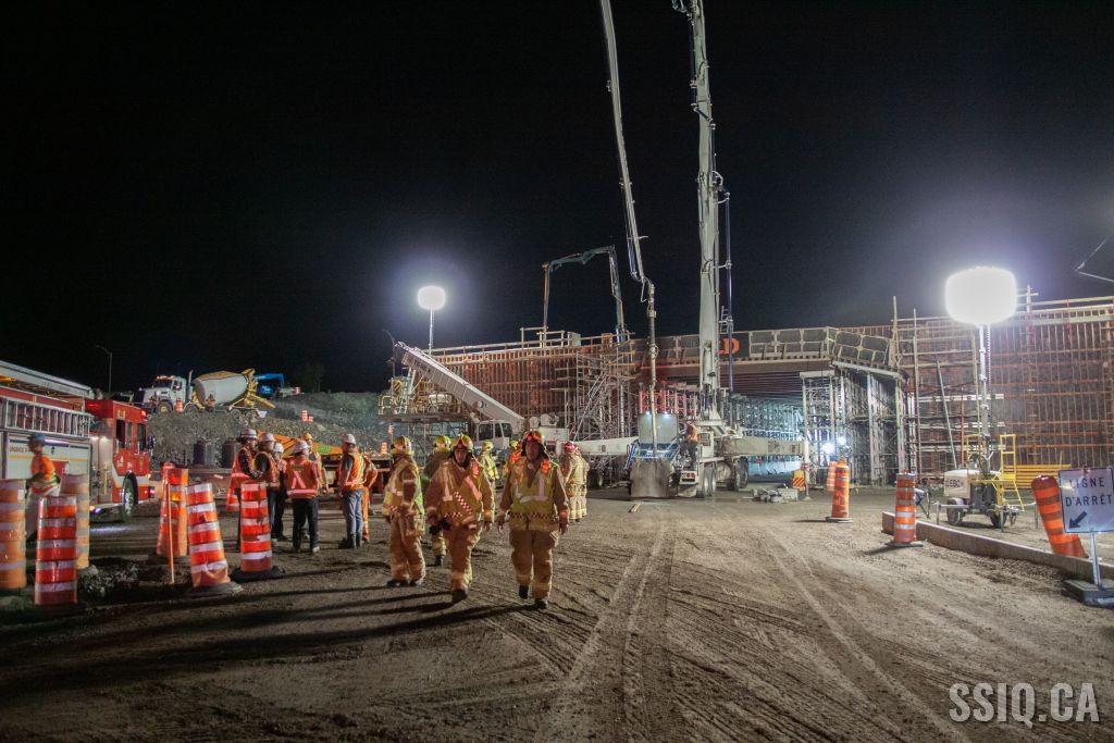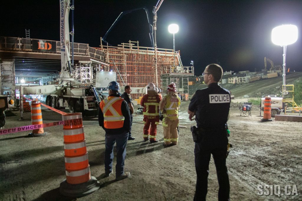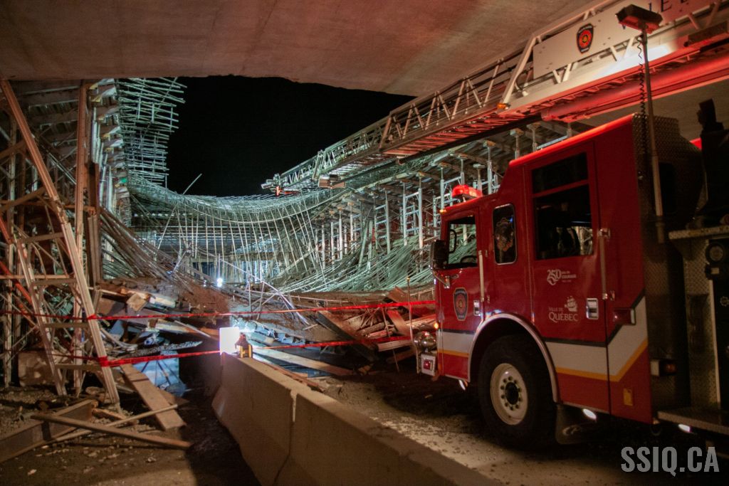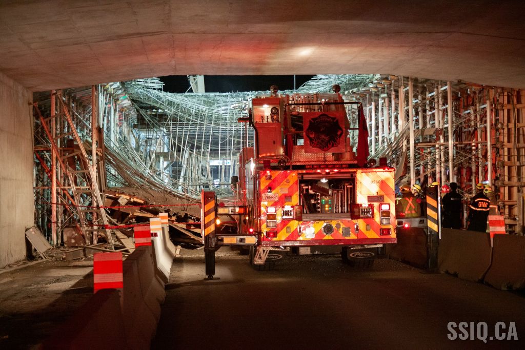 En fin de soirée, les pompiers sont intervenus pour l'effondrement d'un viaduc en construction au chantier de l'autoroute Henri-IV, dans l'arrondissement Les Rivières.