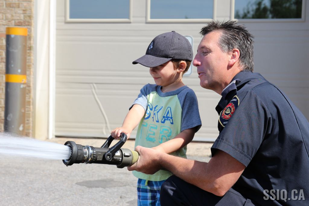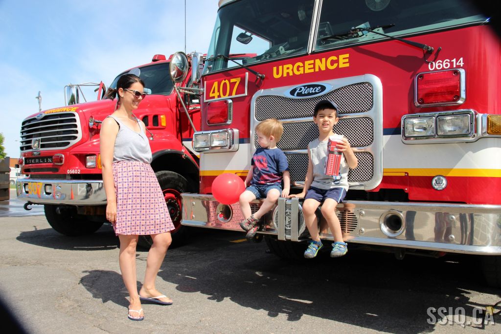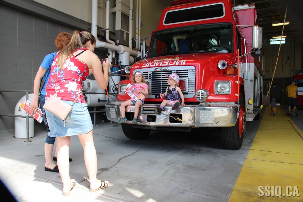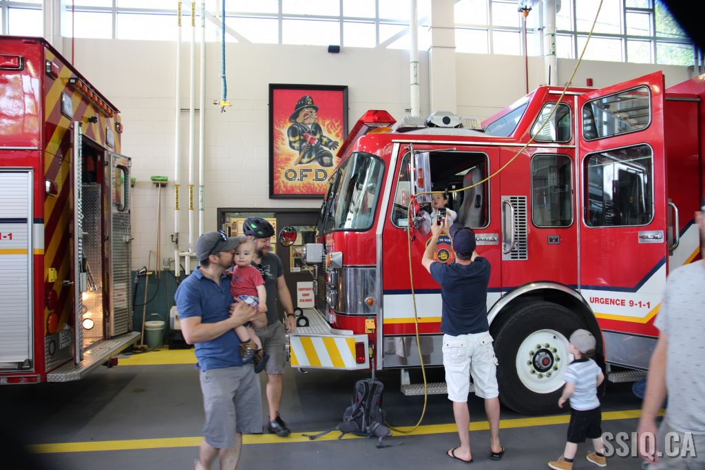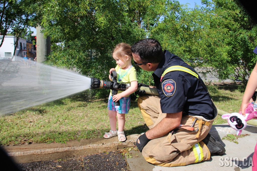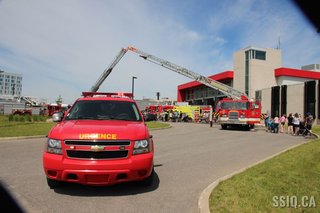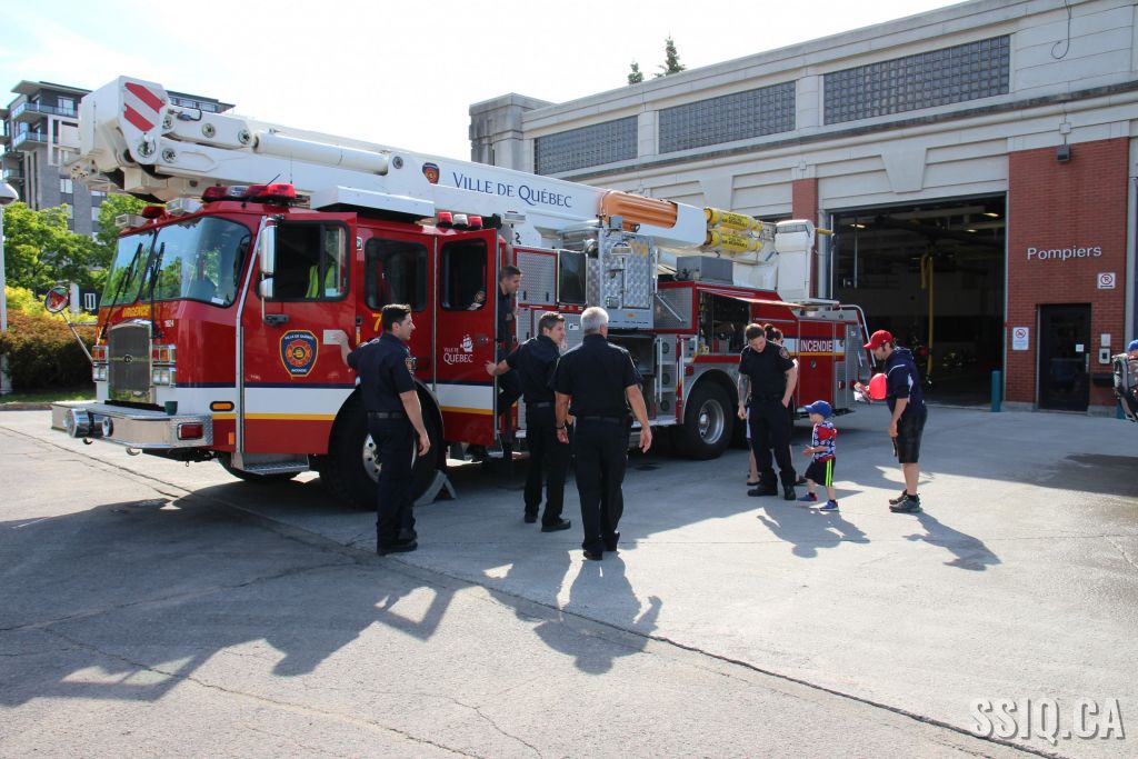 En ce beau samedi du 16 juin, le Service de Protection contre l'incendie de la Ville de Québec ouvrait les portes de toutes les casernes et conviait la population à venir rencontrer les Pompiers et Pompières de son service. Les équipements ainsi que les camions à incendies de toutes sortes étaient exposés fièrement .