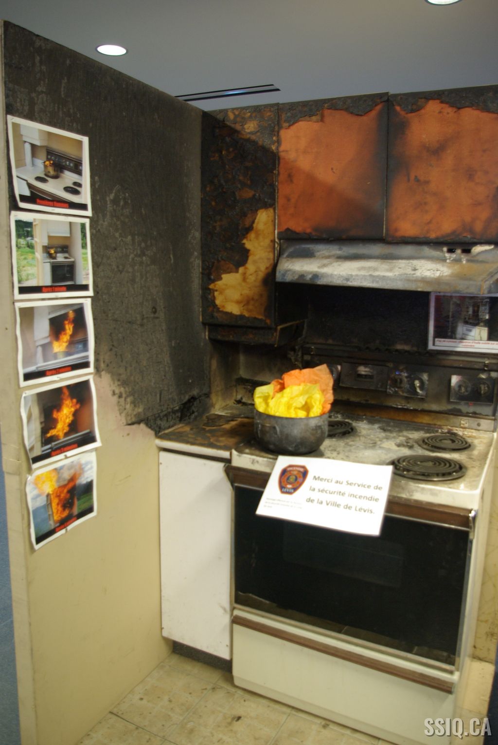 Ce fut l'occasion pour le personnel du SPCIQ de rencontrer les nouveaux arrivants et de les informer sur les feux de cuisinière (maquette de cuisine incendiée par un feu de chaudron).