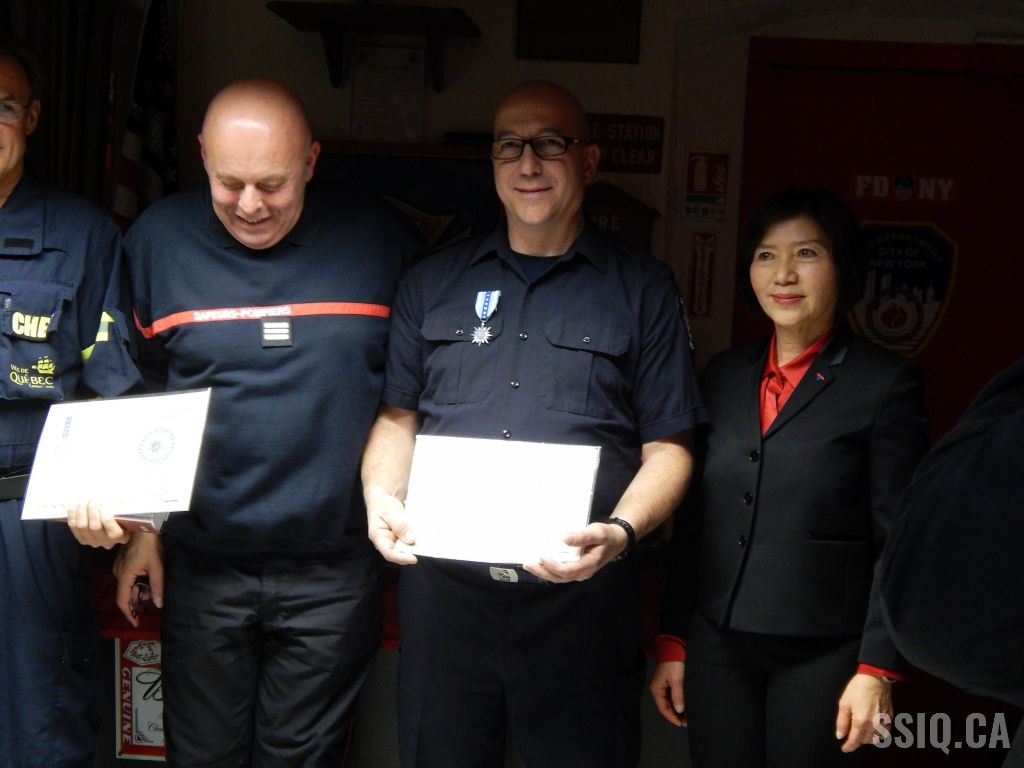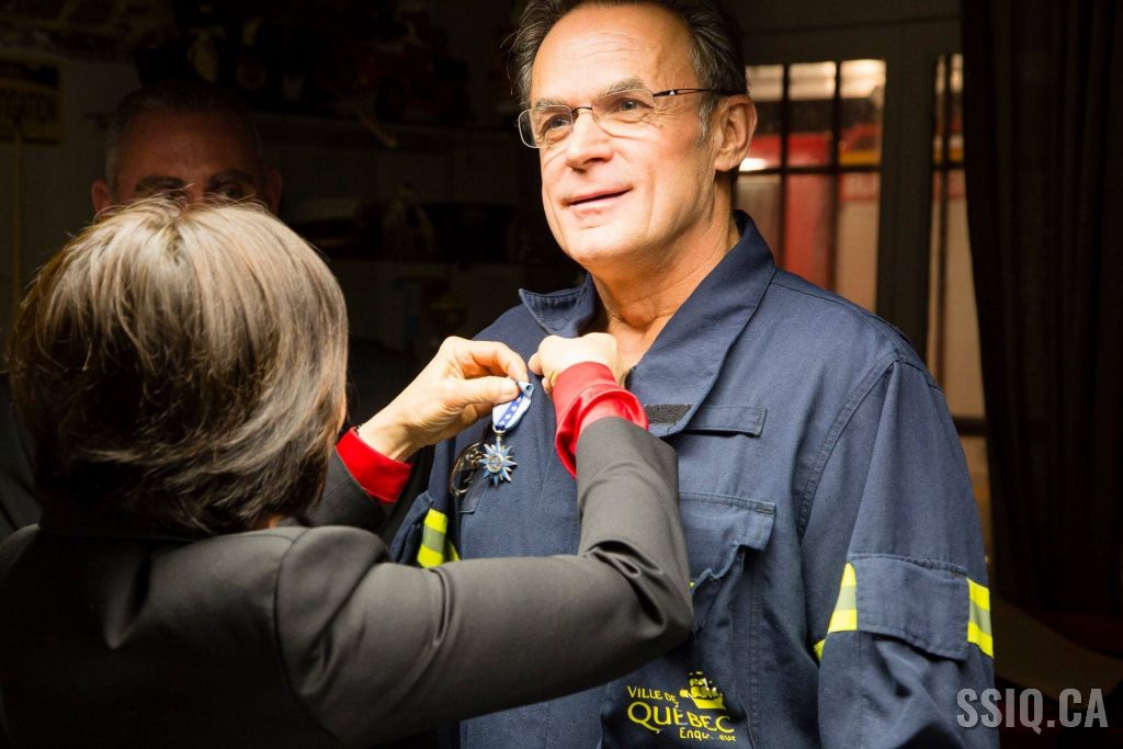 Il était accompagné de Jean-Pierre Boilard, investigateur au Commissariat des Incendies de Québec, lui-même décoré de la médaille. Les deux ont agi comme formateur pour les étudiants en RCCI.