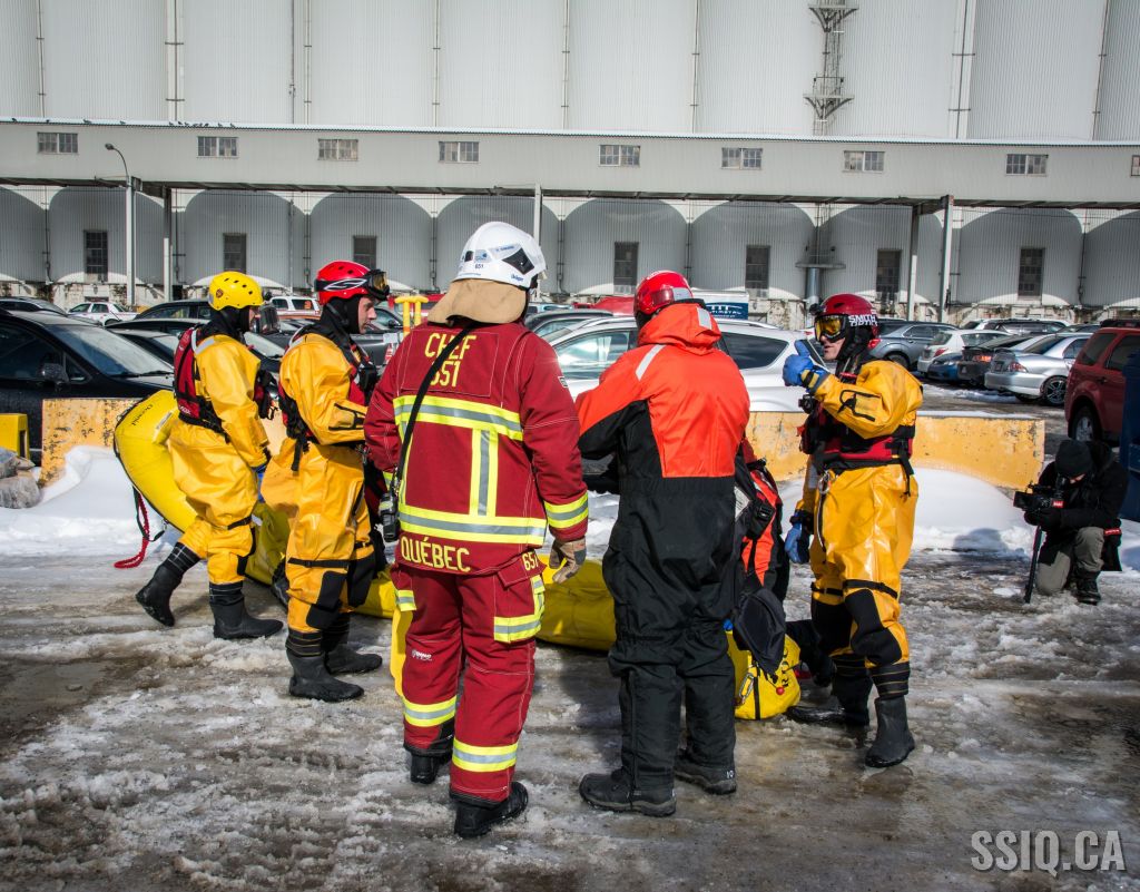 Les équipes de la spécialité en sauvetage nautique du SPCIQ ont procédé à une simulation de sauvetage sur le fleuve St-Laurent le 17 février dernier. Les objectifs d’une tel exercice étaient d’approfondir les compétences techniques de tous, de tester les procédures opérationnelles et aussi valider les protocoles de communication entre les différents services d’urgence, que ce soit entre les intervenants nautiques du SPCIQ, la Garde Côtière, les policiers, les ambulanciers, la Centrale 911, le remorqueur Océan, et le Port de Québec.