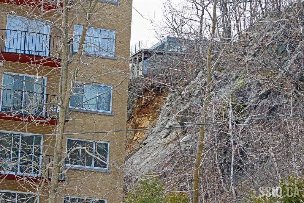 Une résidente appelle pour mentionner un éboulement derrière chez elle.