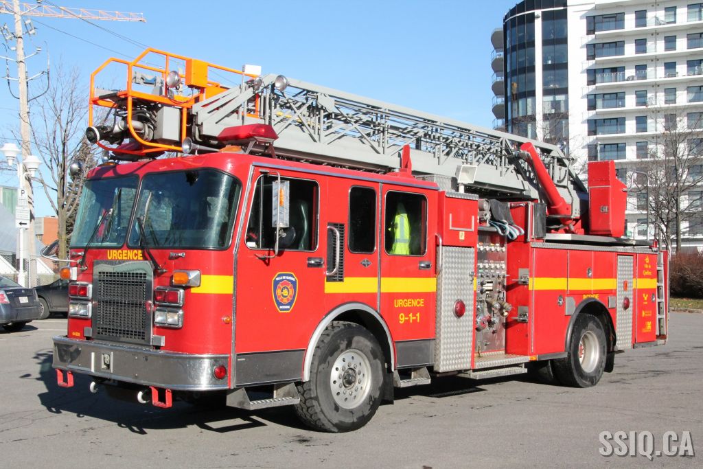 Pompe-échelle construite par Nova Quintech sur châssis Spartan Gladiator 1994. Pompe Hale de 1250 gipm, réservoir de 150 gallons d'eau avec échelle de 80 pieds. Moteur détroit diesel série 60.