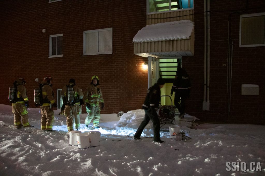 L'appel à la centrale 911 fût logé par une locataire de l'endroit. Les détails mentionnent une forte odeur de solvant dans le bâtiment locatif depuis quelques heures déjà.