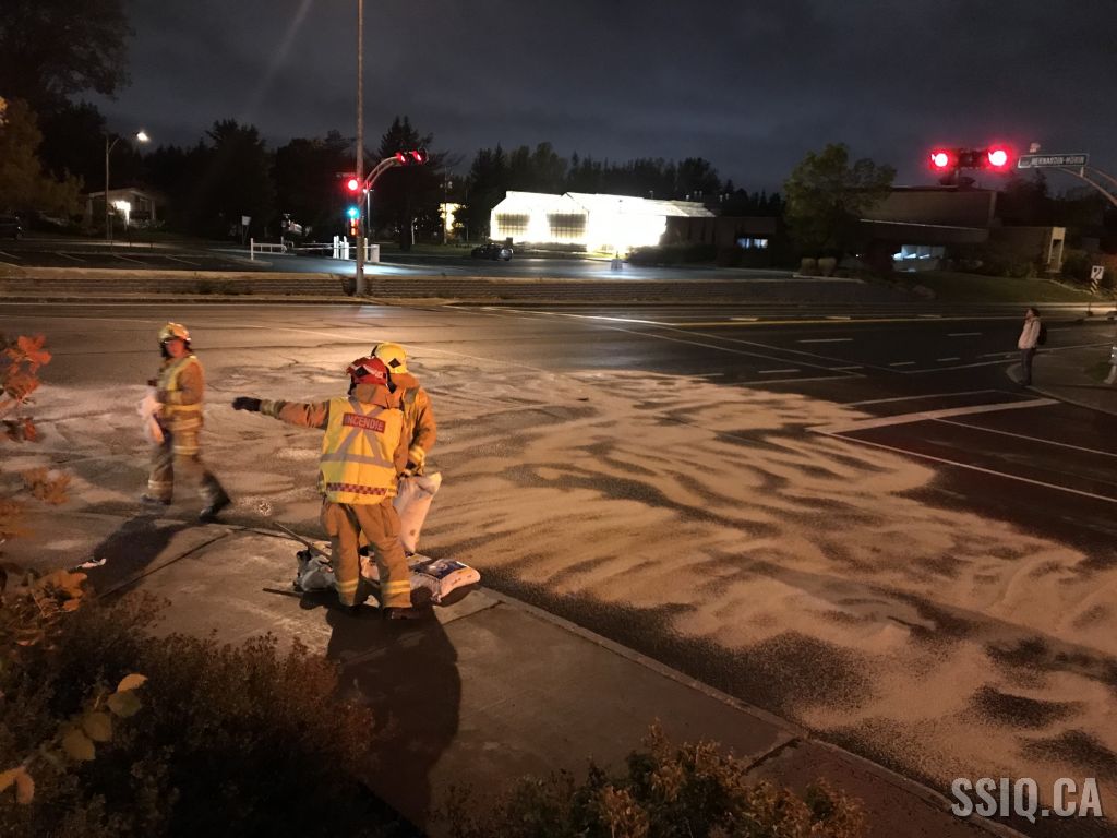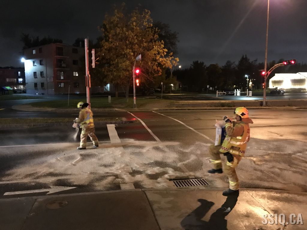 En soirée, les pompiers ont été demandés pour un déversement d’huile à l’intersection de la rue Hochelaga et Bernardin Morin, possiblement une voiture qui aurai eu un bris mécanique plus tôt dans la journée. La chaussée était très glissante. Plusieurs poches d’absorbant à été utilisé pour couvrir les traces d’huile.