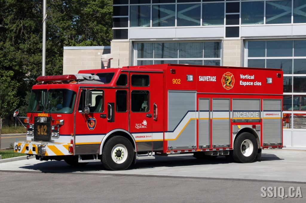Véhicule de réserve. Véhicule d'intervention spécialisé pour le sauvetage en hauteur et en espaces clos. Construit en 2008 par le garage municipal sur un châssis Spartan Gladiator 1994. Moteur Détroit diesel série 60. Ancienne autopompe.