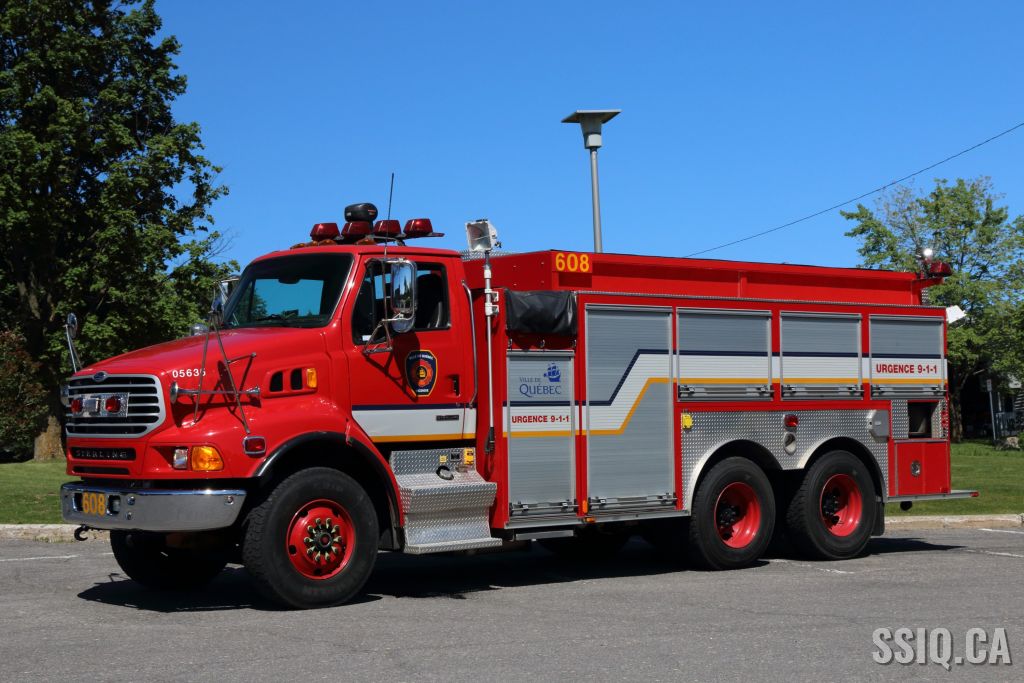 Citerne construite par Carl Thibault sur un châssis Sterling LT9500 2005. Pompe Hale de 250 gpm et réservoir de 1700 gallons d'eau. Moteur Caterpillar de 400 hp.